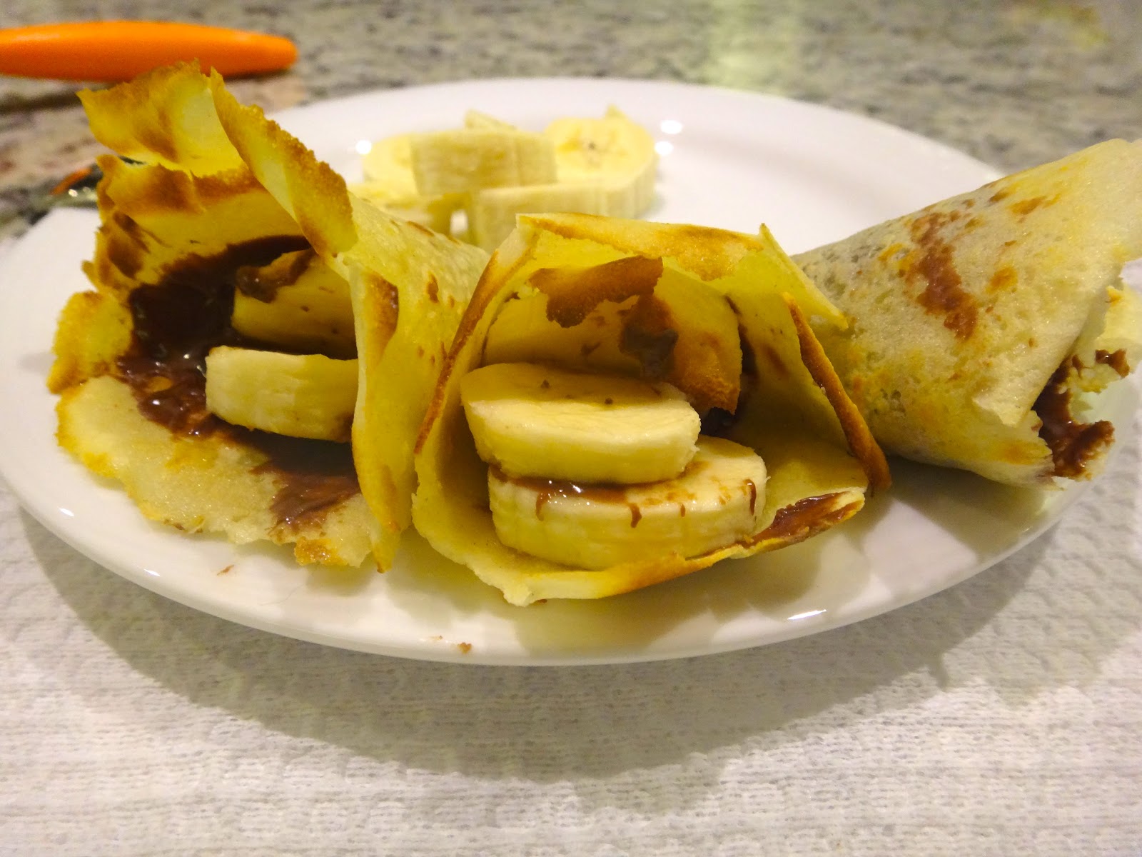 Esto es más que un tip que receta… ¿qué tal ponerle Nutella a un par de crepas, llenarlas de plátano y enrollarlas?