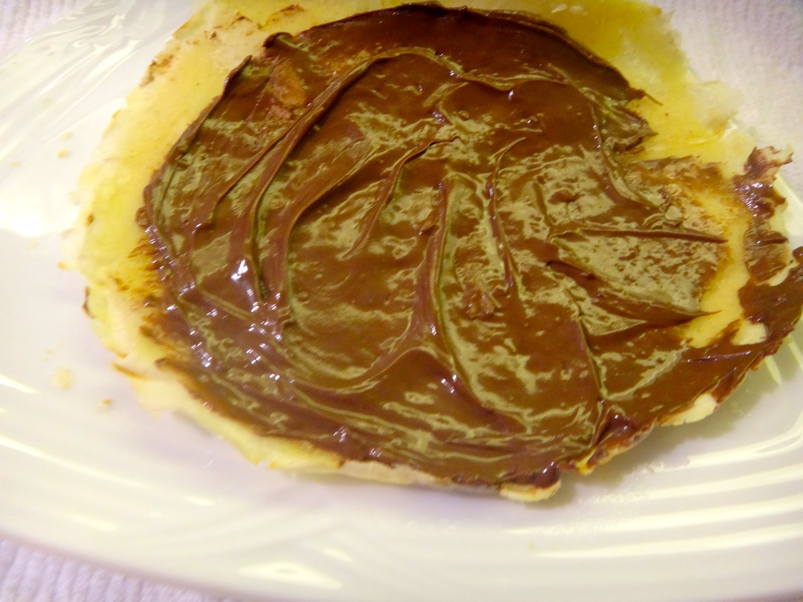 Primero recalienta las crepas en un sartén, la Nutella se derretirá un poco.