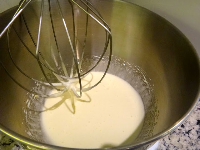 Primero los huevos y el azúcar se baten hasta que queden a punto de listón. (Qué es eso? Fluffy.)