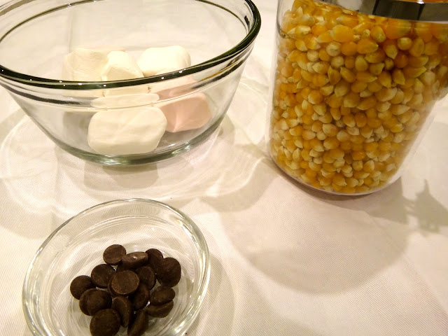 Los implicados. Como siempre, prefiero hacer las palomitas desde cero, pero una mini bolsita de palomitas de microondas es perfecta.