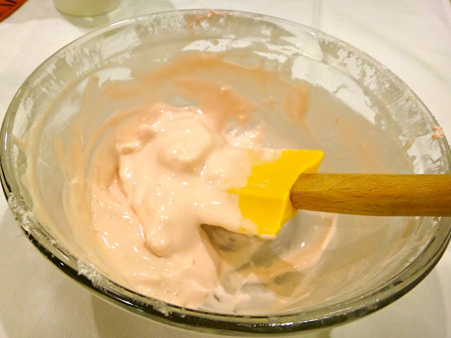 Derretí los bombones en el microhoondas, si nunca han metido un bombón a calentarse en micro, háganlo, se esponja y queda precioso. Derritan en intervalos de 20 segundos y revuelvan hasta que quede cremoso, yo agregué una cucharadita de agua y ayudó a la cremosidad.