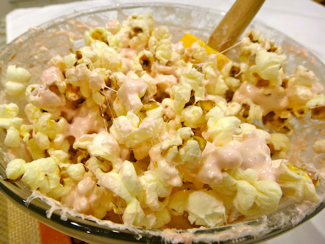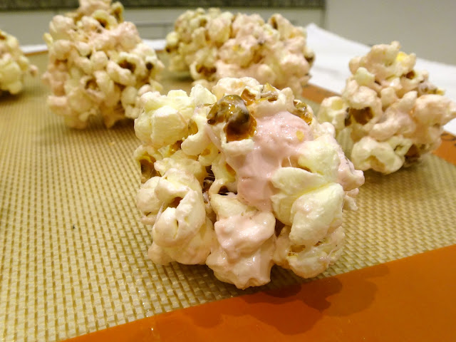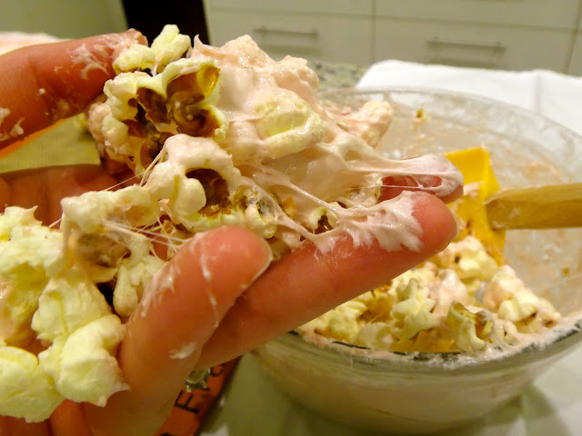 **Si lo tuyo son las palomitas con mantequilla, agrega una cucharadita de mantequilla derretida a la mezcla de bombón y usa mantequilla en vez de aceite para hacer las bolitas.
