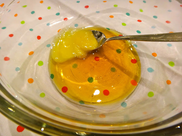 Mezclo 2 cucharadas de miel de maple natural, una cucharada de miel de abeja y un chorrito de agua caliente.