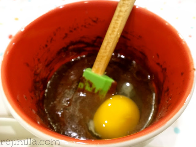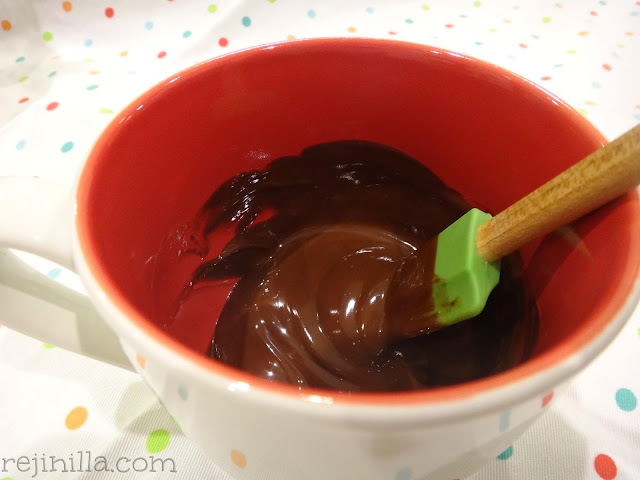 1. En una taza resistente al microondas, derrite el chocolate con la mantequilla poniéndolo por 20-30 segundos en el microondas.