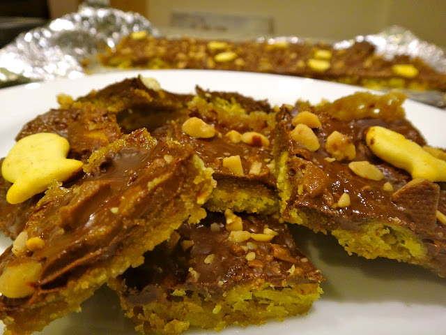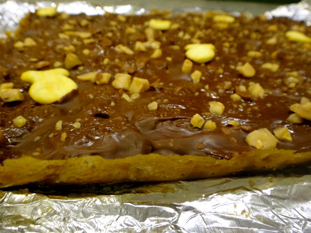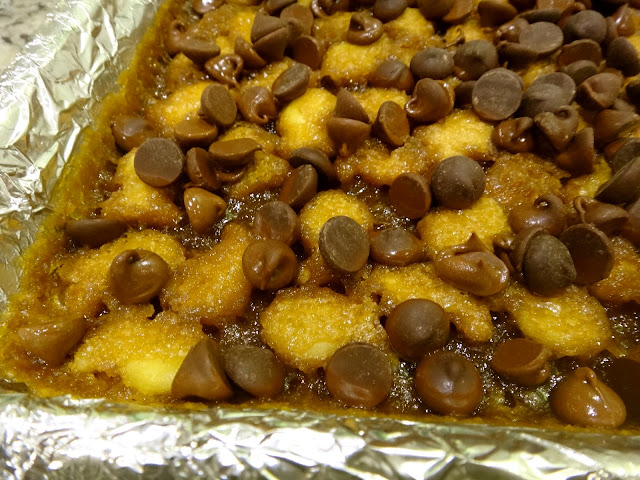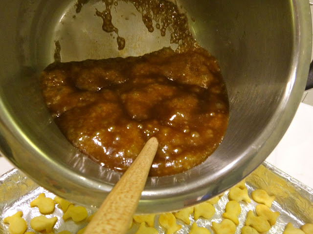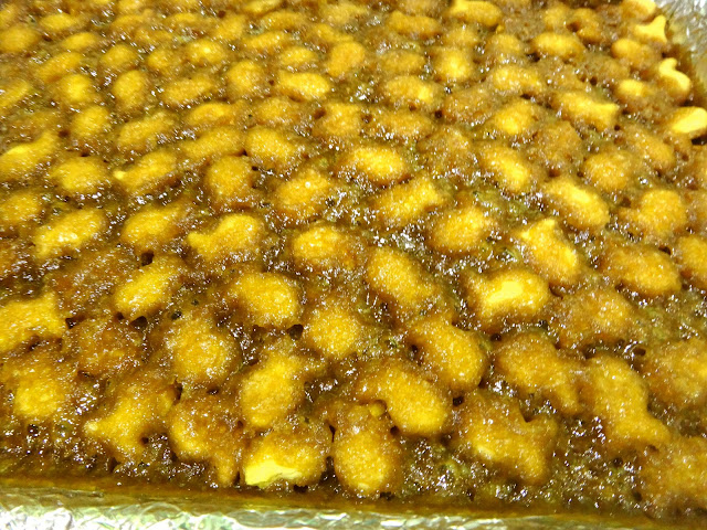 Después va al horno… Las galletitas van a absorber algo de la mezcla de caramelo mientras burbujea.