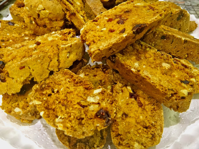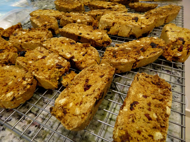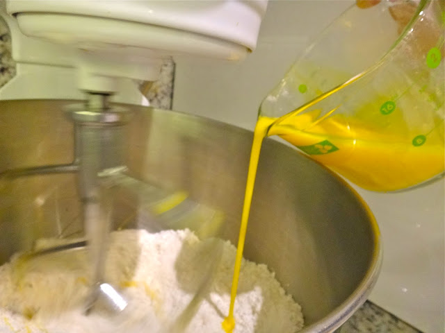 Los ingredientes secos encuentran a los huevos en la batidora. Por cierto, ¿sabían que los biscotti no llevan ni mantequilla ni aceites…?