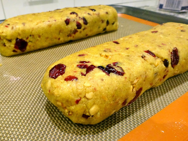 4. Forma dos barras de masa y hornea a 160º por 25 minutos o hasta que esté ligeramente dorado.