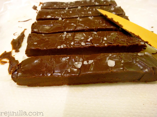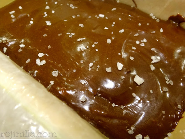 Vacía en un molde cubierto de papel engrasado. Yo espolvoree sal de grano: es una super combinación porque realza el sabor de las cosas.