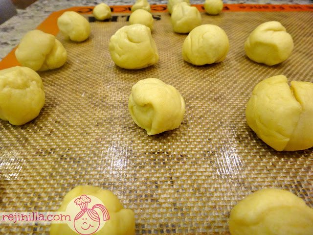 - Toma la masa y desinflala ligeramente y corta en pedazos haciendo bolitas.
