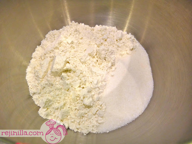 - En una batidora mezcla el azucar, harina y sal. Agrega el huevo.