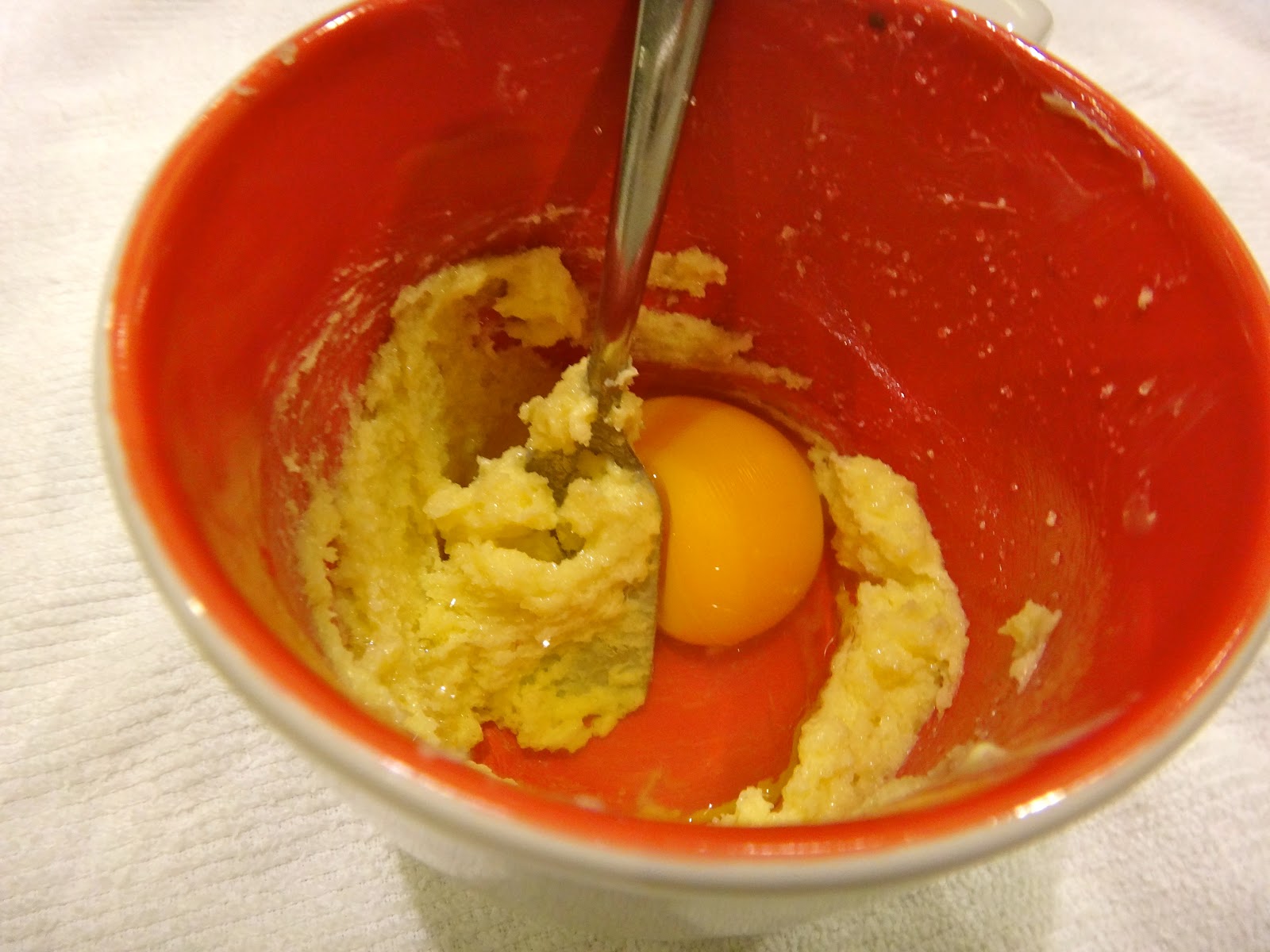 Agrega un huevo. En teoria es mejor romper el huevo en otro bowlsito, batir y dividirlo en dos porciones/tazas de pastel, peeeero en realidad sólo quería hacer uno así que usé el huevo completo.