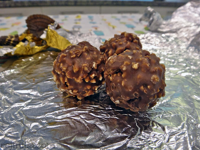 Ya en la máquina llega un punto en el que se ve como helado suave. Está listo para sacar y agregar tres chocolates Ferrero en pedacitos.