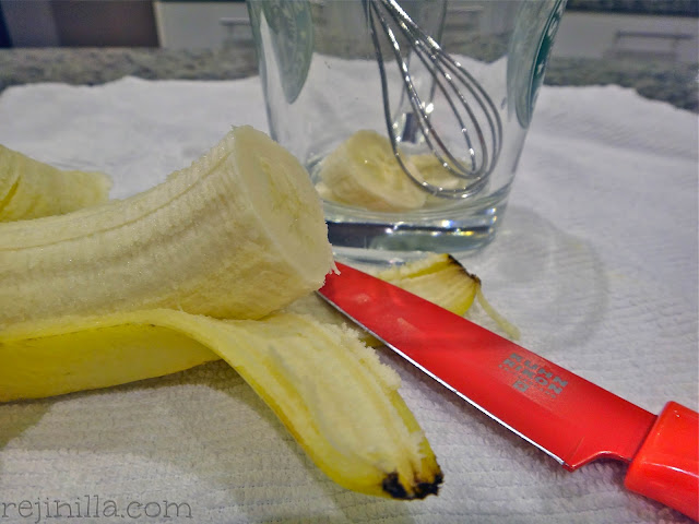 Empieza con un plátano, máchacalo muy bien. De preferencia que esté mas maduro que el que usé yo. No siempre se pueden planear los antojos con la vida de la fruta…