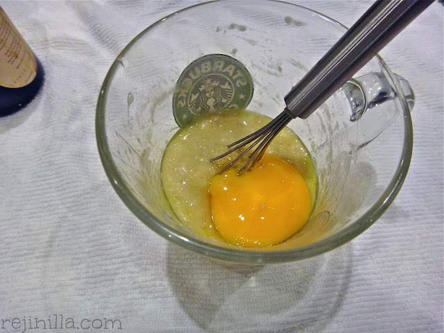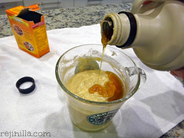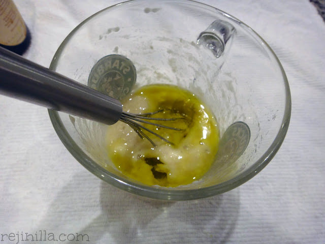 - En una taza grande mezcla el plátano con el aceite, vainilla y leche.