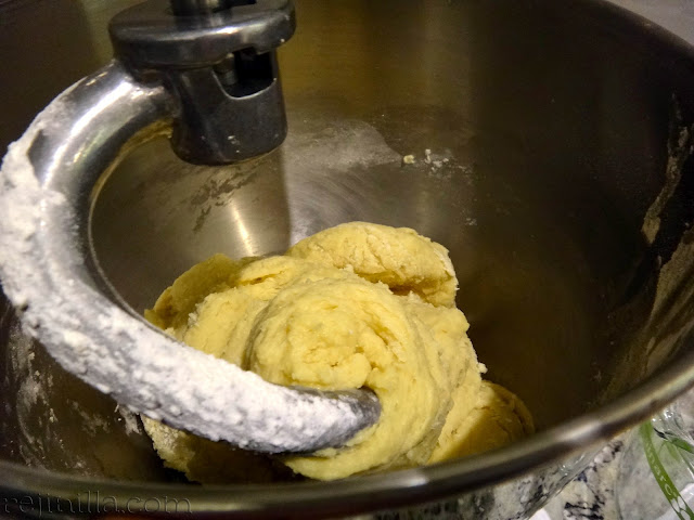 En el bowl de la batidora con el gancho para masa, bate los huevos y agrega la mantequilla derretida (sólo tibia, no caliente). Si no tienes este gancho, puedes hacer la masa a mano, con un poco de fuerza y paciencia.