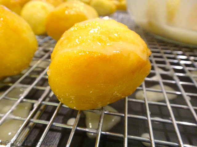 10. Prepara el glaseado, la consistencia debe de ser ligera. Pasa cada bolita por el glaseado y deja escurrir sobre rejillas.