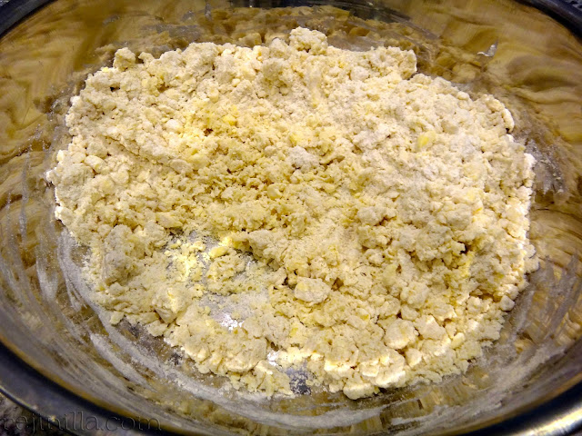 La idea es formar grumitos con la mantequilla. (También podrías hacerlo pulsando los ingredientes en el procesador de alimentos, pero esto es más divertido).