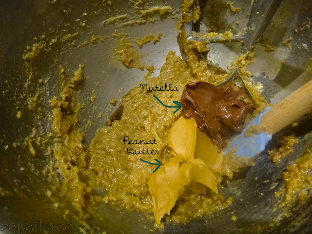 Las galletas empiezan como todas las otras: mantequilla acremada con mezcla de azúcar. En el paso número dos todo cambia, ademas de huevos y vainilla van Nutella y peanut butter.