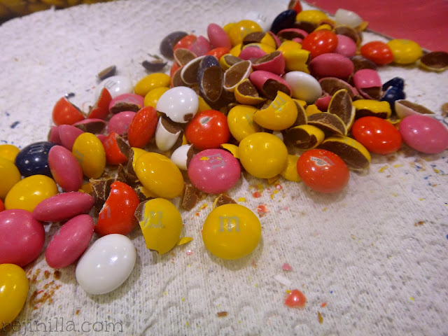 - Por último envuelve las M&M’s y las chispas o nueces si deseas.
