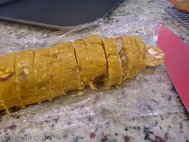 Refrigera el tubo y cuando sea hora de hornear, quita el plástico y corta.