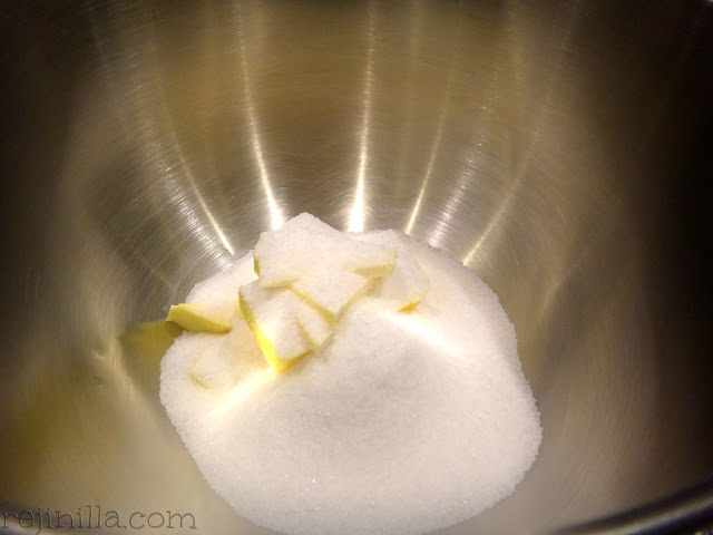 - Acrema la mantequilla con los dos tipos de azúcar. Agrega el huevo y la vainilla.