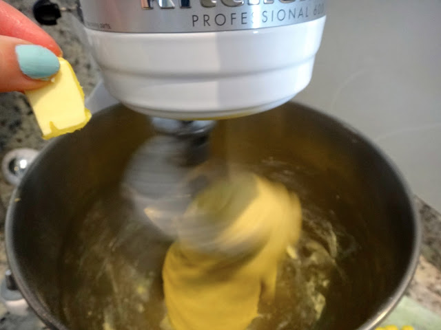 4. Poco a poco, con la batidora andando a velocidad media, agrega la mantequilla pedazo a pedazo.