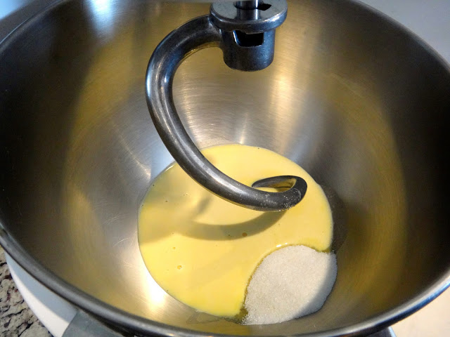 2. Agrega el huevo y la vainilla y mezcla bien.