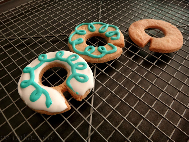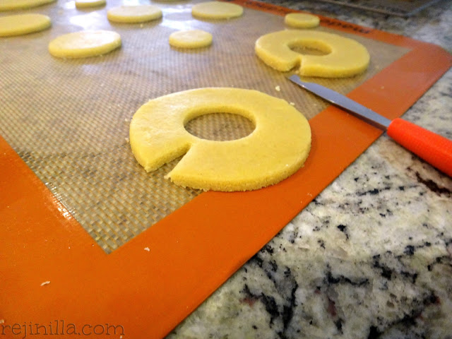 Empieza con tu masa de galletas de azúcar favorita. Corta círculos grandes y luego uno más chico dentro de cada uno, para hacer una dona.