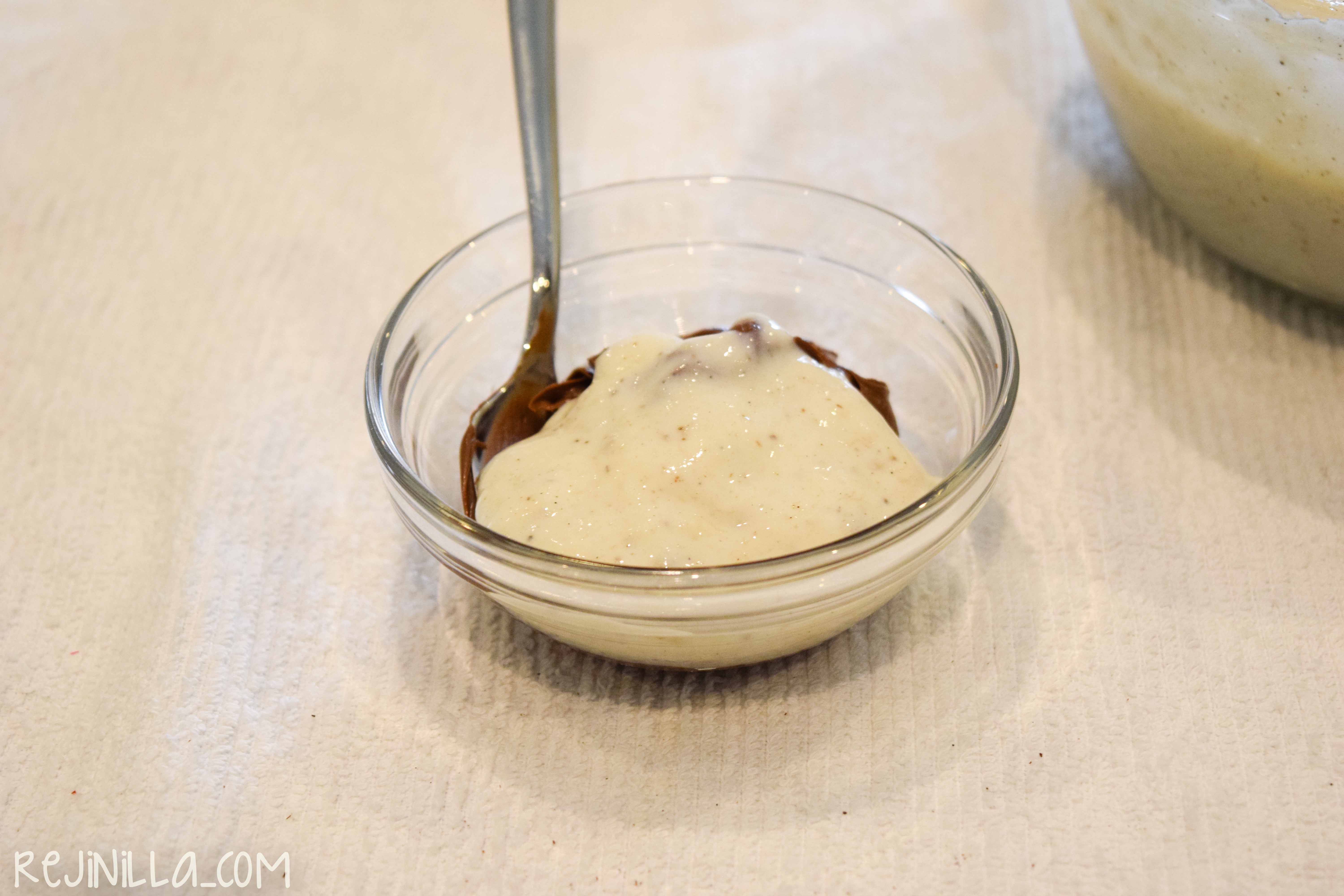 - Separa dos cucharadas de la mezcla de plátano y revuelve con la Nutella hasta que esté uniforme.