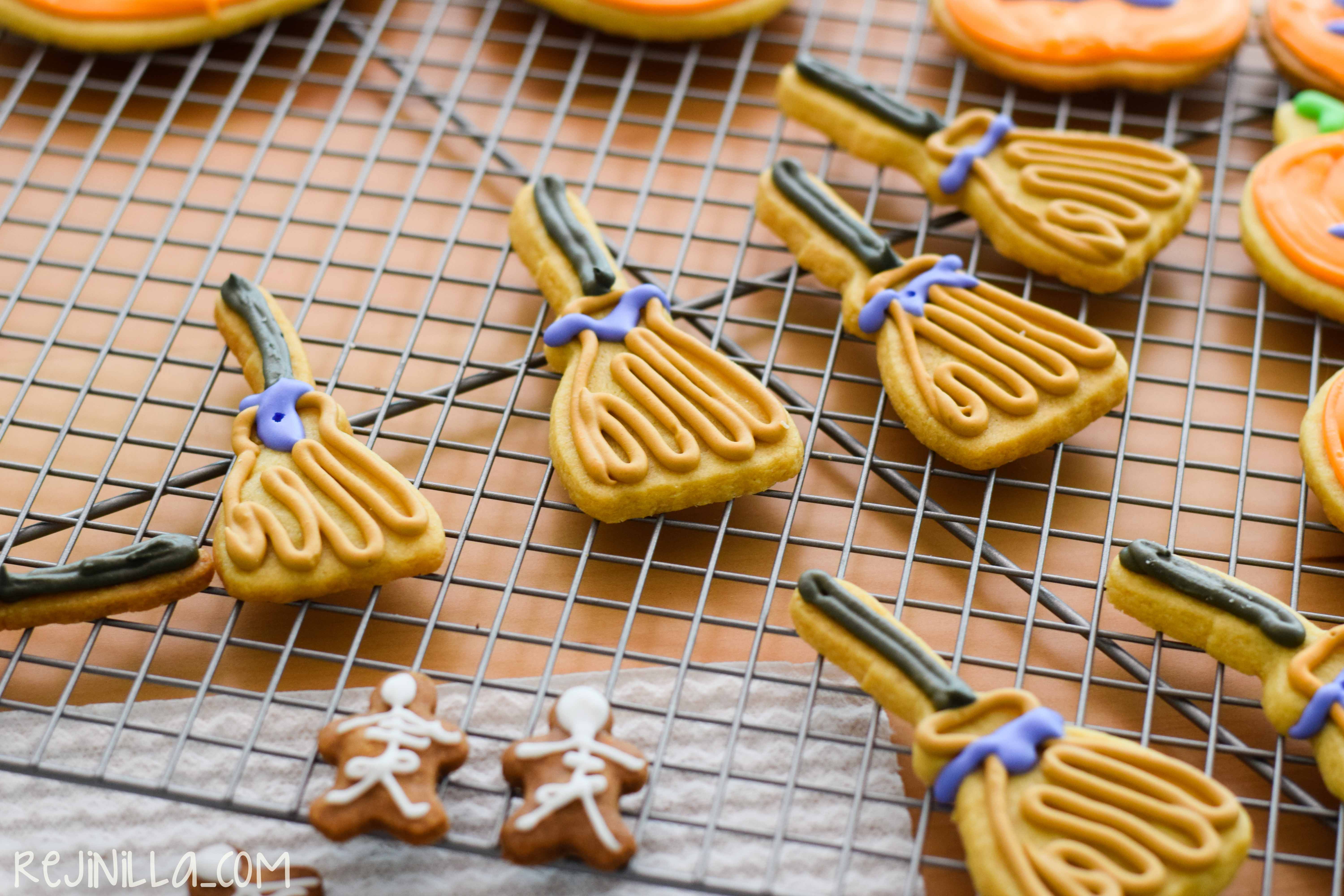 Happy Halloween! Hoy todos se disfrazan (bueno ok, casi todos) y mis galletas también. Muy fáciles de hacer, usa esta masa de galletas de mantequilla (omite los chochitos) y usa tus cortadores de galletas favoritos…