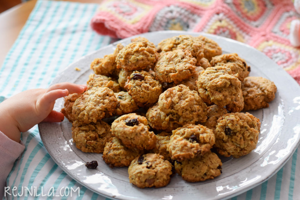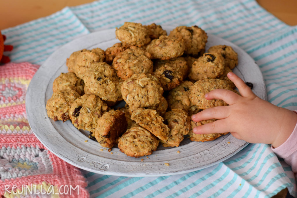Las manitas de mi bebé robándose las galletas son evidencia de que están muy buenas en realidad, lactancia o no lactancia. Con tantas cosas saludables en cada galleta, le mandé un par para el lunch a la escuela el día siguiente.