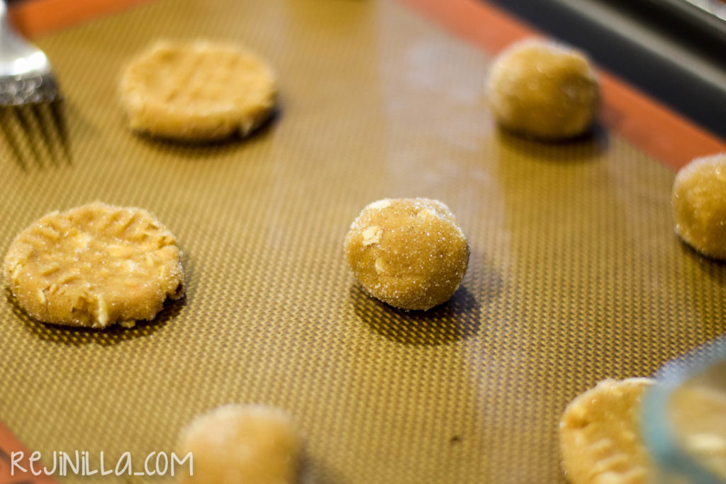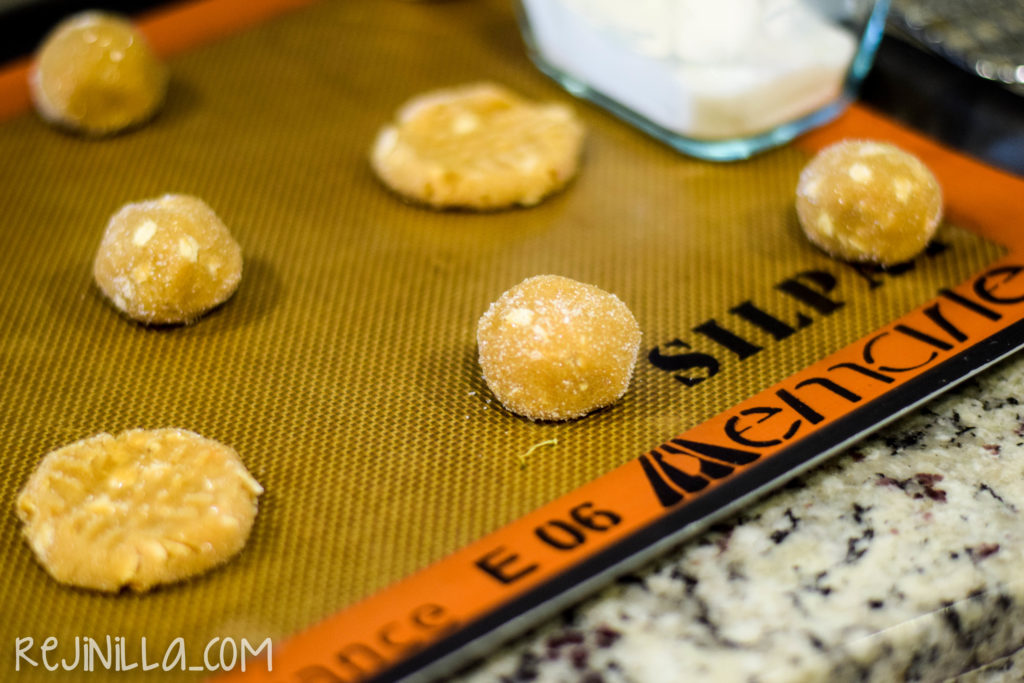 • Haz bolitas de una cucharada y pasa cada una por azúcar. Acomoda en charolas y usando la parte de atrás de un tenedor, imprime un patrón cruzado.