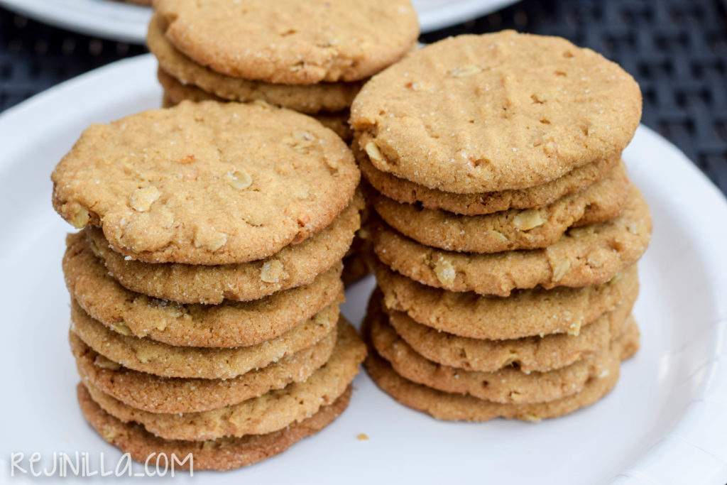 Me gusta mucho la crema de cacahuate. La combinación de dulce y salado, suave y crujiente me encanta. Esta vez decidí hacer galletas de crema de cacahuate. Una clásica receta que no debe fallar en tu repertorio de cocina. El toque final crujiente lo da el azúcar que usamos para aplastarlas con un tenedor. Por cierto, pasa todo en un mismo bowl. Mezcla mantequilla derretida con la crema de cacahuate, azúcar y vainilla. Agrega el huevo. Y al final los ingredientes secos. Me gusta la textura que le da la avena. Haz bolitas de masa y pasa cada una por azúcar. Con la parte de atrás de un tenedor, aplasta ligeramente para darles el look cruzado característico.    Hornea a 175ºC por 8-10 minutos o hasta que estén ligeramente doradas las orillas (seguirán un poco húmedas al centro). Espera unos minutos antes de mover a rejillas.