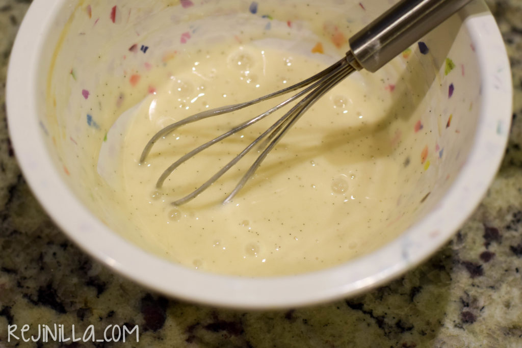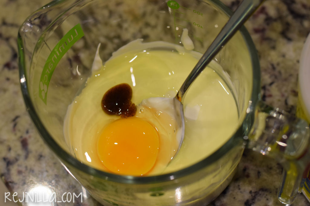 Por otro lado, mezcla la crema, huevo y vainilla.