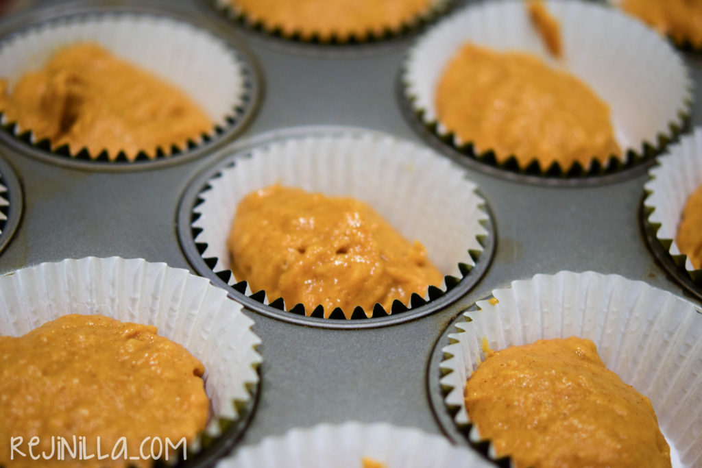 Vacía en moldes de muffins, llenando como a 3/4 de la capacidad.