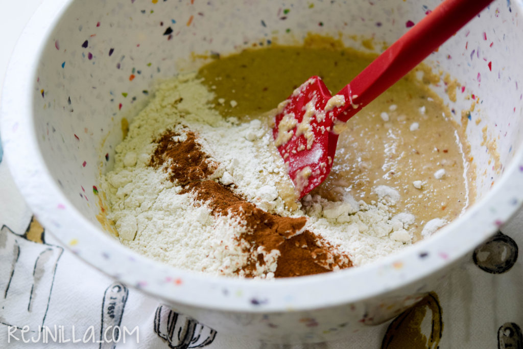 Cambia a un bowl y agrega los ingredientes secos restantes. Mezcla sólo hasta integrar.