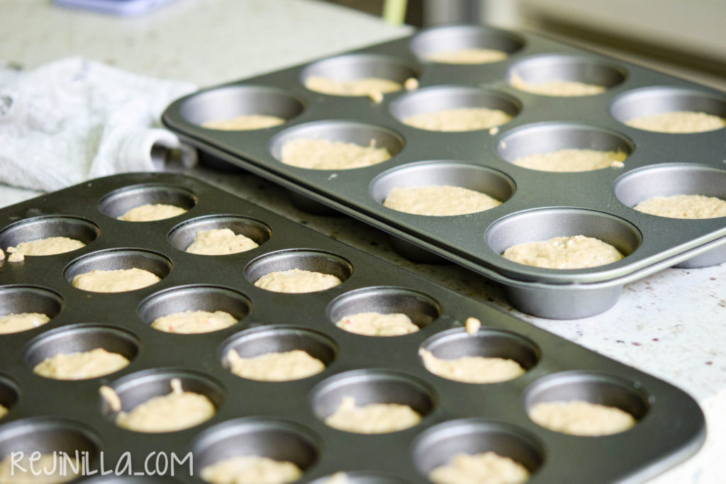 Vacía la mezcla en moldes de cupcakes o mini cupcakes. Salen 12 grandes o 24 minis. Yo hice doble masa porque estos muffins son tan buenos y healthy-ish que sirven para los niños, un snack, complementar desayunos, etc. Los congelo bien sellados en un topper o bolsa de zipper y los voy sacando como los voy necesitando.