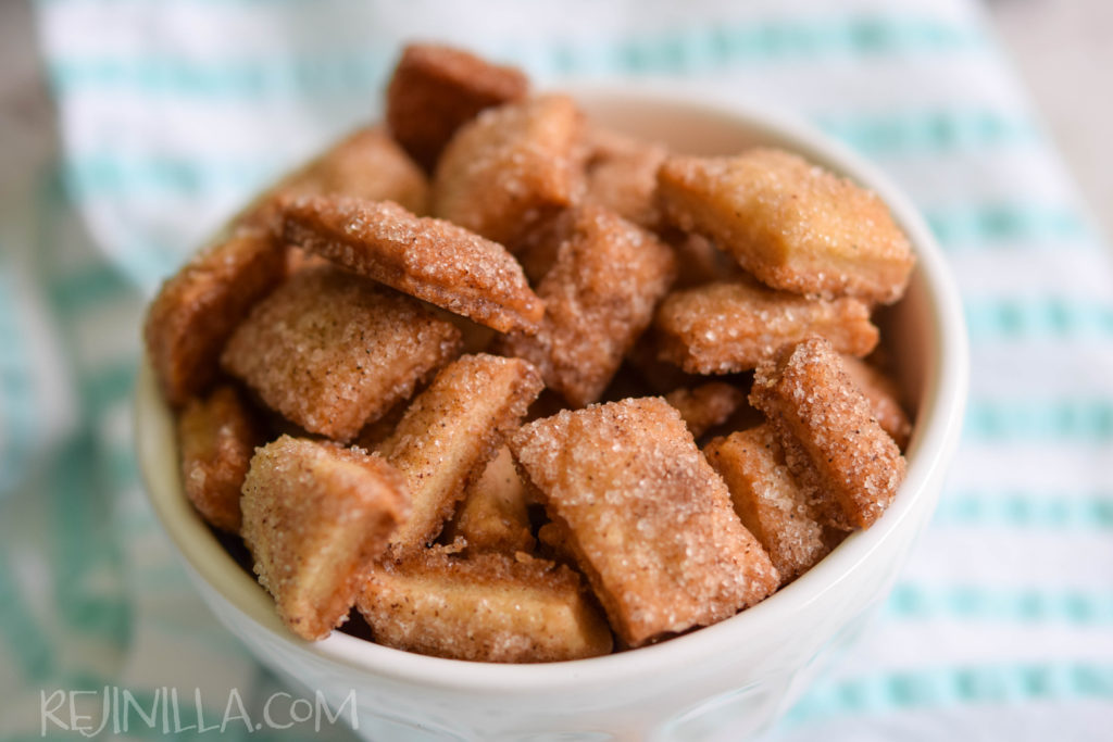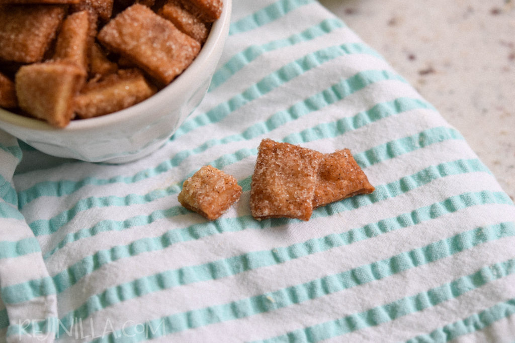 Después de algunos minutos en el horno, tu casa huele a delicia y los pedacitos canelozos te llaman y llaman. Listo. Delicioso.