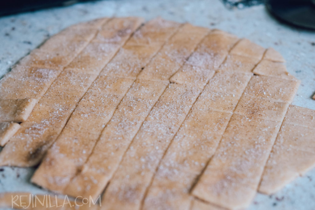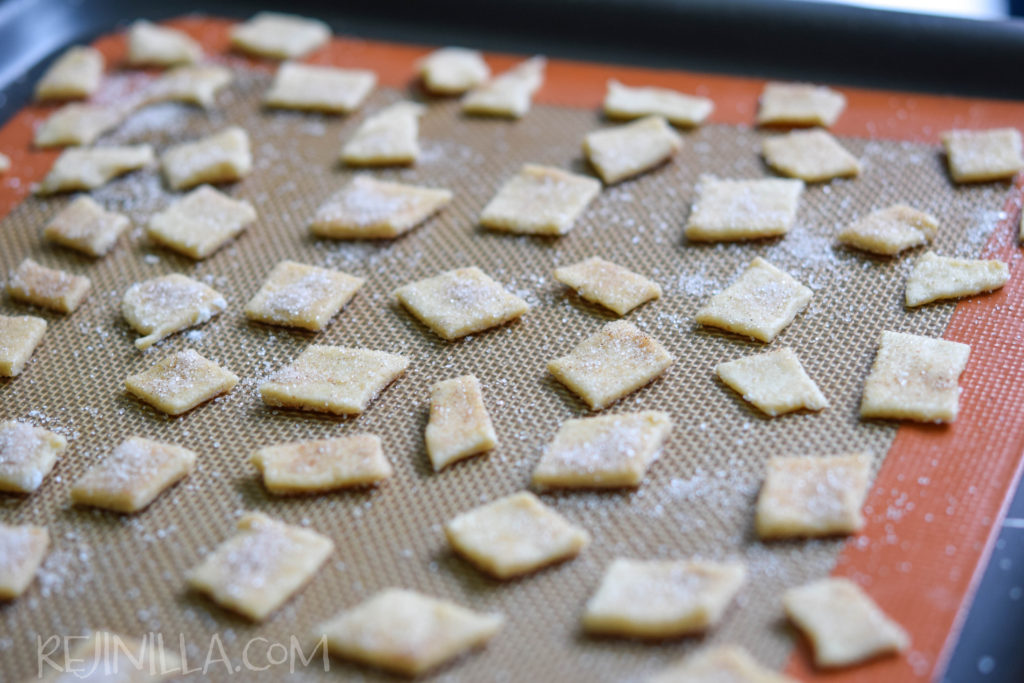Acomoda en una charola, dejando espacio entre cada cuadrito, espolvorea con más azúcar y canela, al gusto…