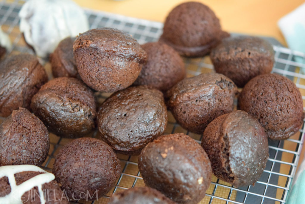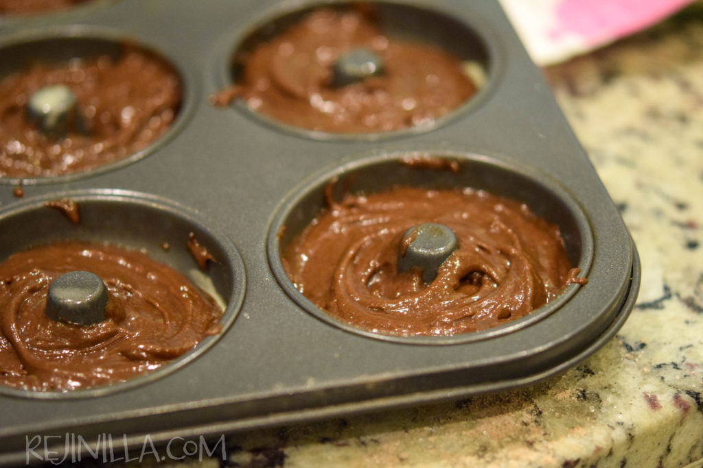 Mezcla los ingredientes húmedos con los secos, acomoda en el molde para donitas, de mini muffins para hacer hoyitos de dona. O el que tengas por ahí. Asegúrate que esté bien engrasado y enharinado.