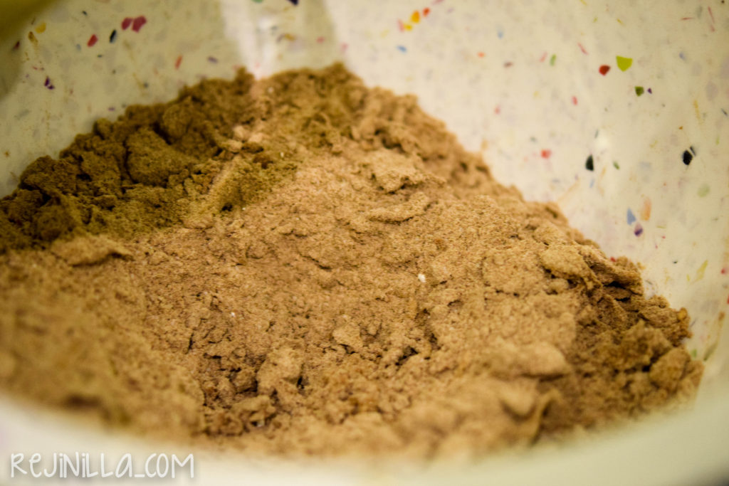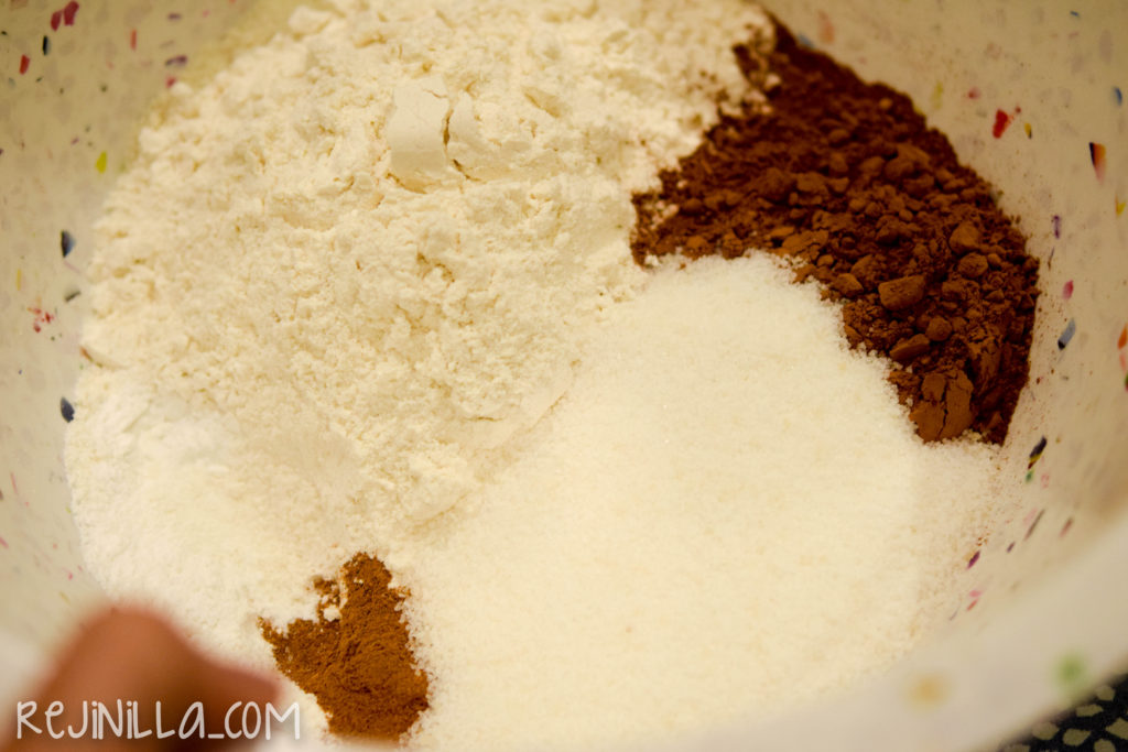 Estos son súper fáciles de hacer, como más me gusta. Mezcla los ingredientes secos y separa. Esa pizca de canela es una gran adición, como que redondea y suavizar el sabor intenso del chocolate.