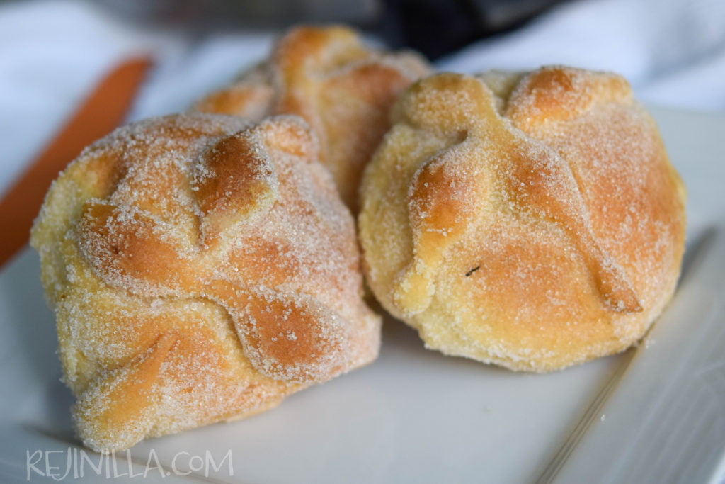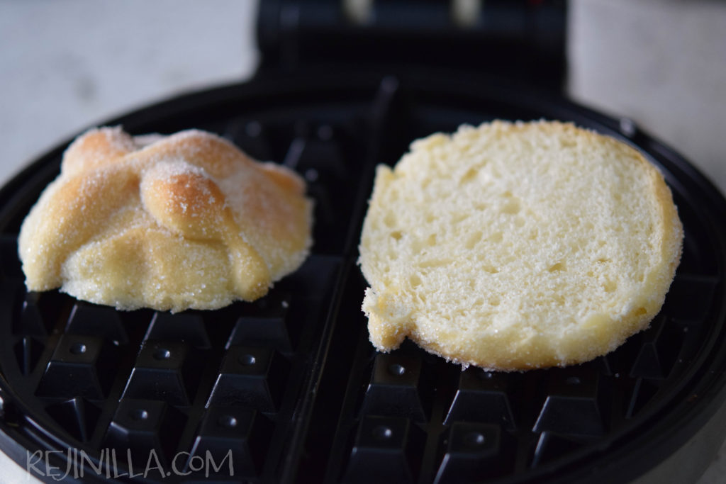 No podría ser más fácil, pero juro que se van a sorprender lo delicioso… el azúcar y mantequilla de la cubierta se caramelizan, casi haciendo una cubierta crujiente. El pan se compacta y queda tostado y con el sabor característico del pan de muerto, mezclado con el sabor de caramelo.